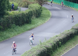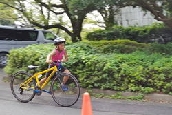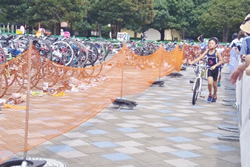 しかし、そこはキッズ・トライアスロン。前にカゴが付いたタイプの家庭的(?)な自転車で参加する少年もいて、それはそれですごく微笑ましい。