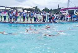 前日におとなが参加するトライアスロン大会を終えた11日、トライアスロン・キッズが集まってきた。