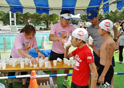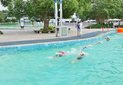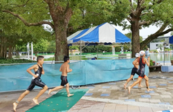 最初の種目は公園内のレインボープールで行われるスイムだ。ついこの前まで、ファミリーやカップルで賑わった優雅なレジャー用のプールが、たった今、少年少女が凌ぎを削る競技場に変わる。