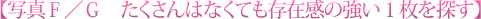 写真Fは同じような色をした葉がたくさん重なり合っているために、主役とした画面中央左の葉の存在感が引き立っていません。