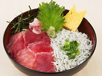 東北・首都圏編のラストを飾るのは、まさに静岡らしい海の幸の丼です。駿河湾の桜海老やシラス、海の幸メニューを揃えるフードコートにある「駿河丸」のおすすめ丼が、紅白丼。紅はまぐろの切り落とし、白は駿河湾で水揚げされた釜揚げシラス。美しく美味しい紅白です。これで980円と1000円を切るのが驚きです。そのほか、まぐろ、ねぎとろ、桜海老、シラスがのった漁師丼も贅沢なメニューです。