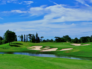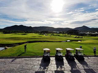 今月はタイ・ホアヒンのゴルフ場です。ホアヒンはバンコクから南にクルマで3時間の海のリゾートですが、周囲には全米以外のベストゴルフ場100に選ばれたコースやワイナリーがあります。