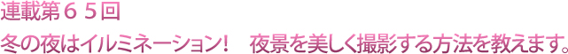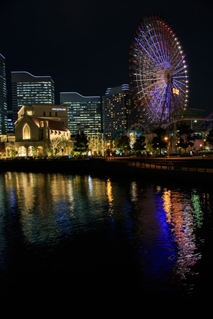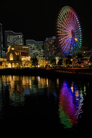 以前このコーナーで紹介(バックナンバー第44回を参照)したように、水に映った景色を活かすことで、夜景&イルミネーションがより一層煌びやかになります。