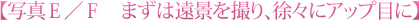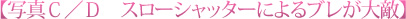 もう一つは、現場でカメラが固定できる場所を探して撮る方法です。実際に写真Dは、撮影現場にあった柵の上にカメラを載せ、動かさないようにして撮影したものです。ただしこの方法の場合、現場に固定できるものがあるかないか、また仮にあったとしても撮影する絵柄が限られてしまうなど、確実な方法とは言えません。