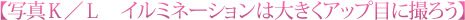 そこで、「キレイだから」とあれもこれも入れて狙う(写真K)のではなく、主役となる部分をアップ目に狙う(写真L)ようにしましょう。アップ目に撮ることで、電灯の明るさが強調されます。