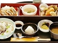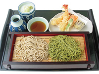カレー専門店、鉄板焼レストランがあるので、各種のカレー(特に、よもぎコロッケカレーに注目)やビーフバター焼きなどの“洋食メニュー”が人気です。しかし、あえて日本食をご紹介。二色天せいろ蕎麦は2種類のそばが食べられるメニューです。いかにも「おそばらしい色艶」のほうは国産十割そば。そばの風味がおいしさを引き立てています。そして、茶色のほうは地域特産の八女茶をブレンドしたものです。純のそばと、お茶の風味のそば、ふたつの味比べを楽しんでください。