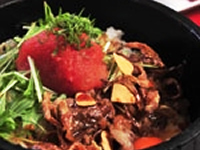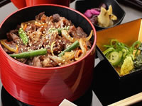 かつて西日本丼ぶり王決定戦で準グランプリに輝いたメニューです。琵琶湖を望む近江で大事に育てられた近江牛の上質肉を、大津の銘酒と杉樽で熟成させた醤油で作ったタレをからめて焼いてあります。食べ方はひつまぶしと同様。まずはそのまま。お次に薬味をのせて。最後はカツオとコブの出汁をかけて…。おいしい近江牛を3通りの味で楽しめるなんて、贅沢の極みというべきでしょうか。さすがに準グランプリメニューだと感心するに違いありません。ぜひお試しあれ。