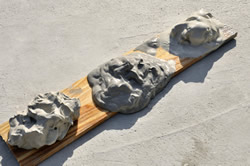 湯守の話によれば、泥の効用も湧き出す場所によって異なってくるそうで、3つの泥を板の上に乗せて比較してくれた。