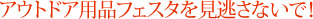 フェスタでは必ず自分たちのキャンプスタイルに合った新製品が見つかります。まずはフェスタ会場にでかけて新製品のチェックをしておきたいものです。