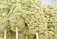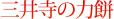串に刺した小さなお餅に個性ある蜜と青きなこをまぶした独特の力餅です。もともと弁慶にちなんだお餅だとか。さすがに京都に近いだけあって、このほかにもショッピングコーナーには和のお菓子がたくさん並んでいます。