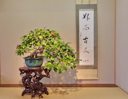 盆栽美術館では四季の盆栽や「真」、「行」、「草」の三形式によって作られた座敷と、そこに飾られた盆栽を鑑賞できる。