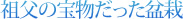 日中の祖父は診療室にこもり切りだから、めったに姿を見ることはない。しかし、朝に、夕に、ランニング姿で盆栽に水やりをしていた姿は鮮明に覚えている。