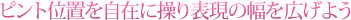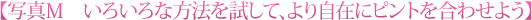 今回は、ピントの位置を変えることをテーマにしてみましたが、ピント位置を変える方法(とくに背面液晶を使った場合)にはいくつかのアプローチがあります。