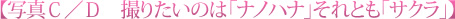 ナノハナにピントを合わせ、ナノハナを主役にしたのが写真Cです。