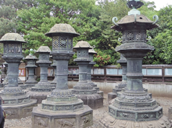 黄金殿が完成するにあたり、全国の大名から灯籠が奉納され、その数は250基を数えました。現在でも48基の灯籠が残り、唐門両側には紀伊、水戸、尾張の「徳川御三家」から寄進された見事な灯籠が見られます。