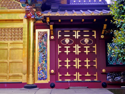 黄金の建物とは、1651年に造営された権現造りの上野東照宮の社殿のことです。同じ年に造営された唐門も金色をしています。