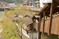 十津川が一望でき、店が何軒か集まっている橋のたもとに、「庵の湯」という日帰り入浴施設があった。近くに村営の駐車場がある。