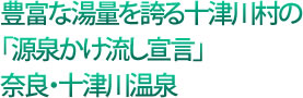 2004年6月28日に、十津川温泉郷の十津川温泉、湯泉地(とうせんじ)温泉、上湯(かみゆ)温泉にある25の温泉施設のすべてにおいて、源泉かけ流し宣言をした。