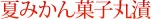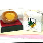地元、萩の夏みかんを丸ごと使用しています。丸漬の名のとおり、夏みかんの中に羊羹を流し込んでいます。羊羹と夏みかんの二つの味がミックスされて、なんともいえない和スイーツになりました。柑橘系フルーツが和にも合う見本のようなお菓子です。