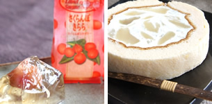 茨城県は実はフルーツ王国でもあります。栗や赤梨など、全国でも生産高が多いフルーツがたくさん。また、偕楽園のイメージで茨城=梅という方も多いでしょう。白あんを求肥で包み、さらに、赤紫蘇の葉で包んだのが水戸の梅です。梅の香りがなんともいえません。