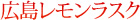 以前にもこの欄でご紹介し、大好評だった広島レモンのラスクです。果皮をピューレ状にして、ラスクに染み込ませました。レモン味が絶妙で、後を引くラスクになっています。七塚原SA限定商品ですから、このエリアを通った際はぜひお立ち寄りを。