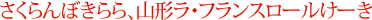 山形ラ・フランスロールけーきは、クリームの中にラ・フランスが入っています。こちらは一旦冷凍し、解凍されたスポンジとクリーム、そしてシャーベット状のラ・フランスを召し上がってください。