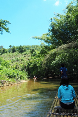 しかし、プーケットの筏下りは、操作は筏ボーイに任せて、のん気に座っているだけ。なんとも涼しく気持ちいいのだった。