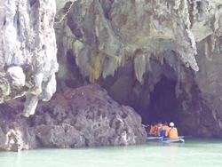 島の個性が異なるから、プーケットの港から乗った、ランチビュッフェも食べられる船だと、小さな島には行けない。そこで、ツアー途中でカヌーに乗ったり、小型の細長い船に乗り換える。