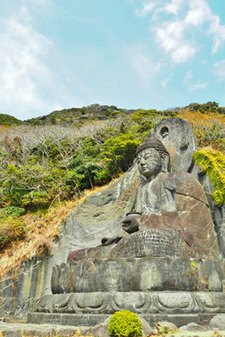 しかし、今日では順調に復興事業が進みました。たとえば、鋸山中腹に彫刻された大仏は、江戸時代末期に風触によって頭部が崩れ落ちましたが、それもみごとに修復されています。本堂なども同様に修復が終わりました。