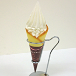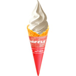 クレミアミックスとラングドシャコーンのふたつのおいしさがミックスして絶妙な味わいを演出しています。露店で販売している他のソフトとは一線を画したソフトです。