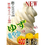 新登場! 茨城県御前山で採れたゆずを、長期にわたる研究でおいしいソフトに仕上げました。「神秘的な味わい」がセールストーク。ぜひ、実際に味わってみてください。