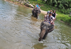 南国タイはマリンスポーツやゴルフなどが観光客に人気だが、象に乗る体験も代表的なアクティビティのひとつ。しかも、狭い場内をぐるりと周回するだけではなかった。