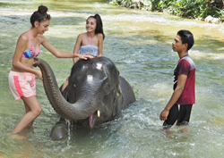 象と一緒に川遊び