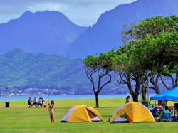 彼らはハワイ・オアフ島のビーチサイドキャンプ場にテントを張っていました。もちろん、オアフ島にはいくつものリゾートホテルがあります。ワイキキをはじめとしたエリアには、美しい砂浜と直結しているホテルもあります。