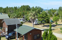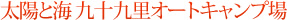 松林の向こうはすぐに海。大原海水浴場までは徒歩10分ですが、防風林に囲まれた芝生のサイトは快適に過ごせます。オートサイトは60区画でそのうち20区画がAC電源付きです。