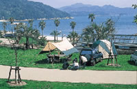 瀬戸内海に浮かぶ周防大島にあるキャンプ場。ヤシの木、波の音と南国リゾートにテントを張る感覚です。電源付きサイトが40、フリーサイトが47。広大な敷地で海を満喫できます。