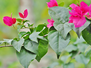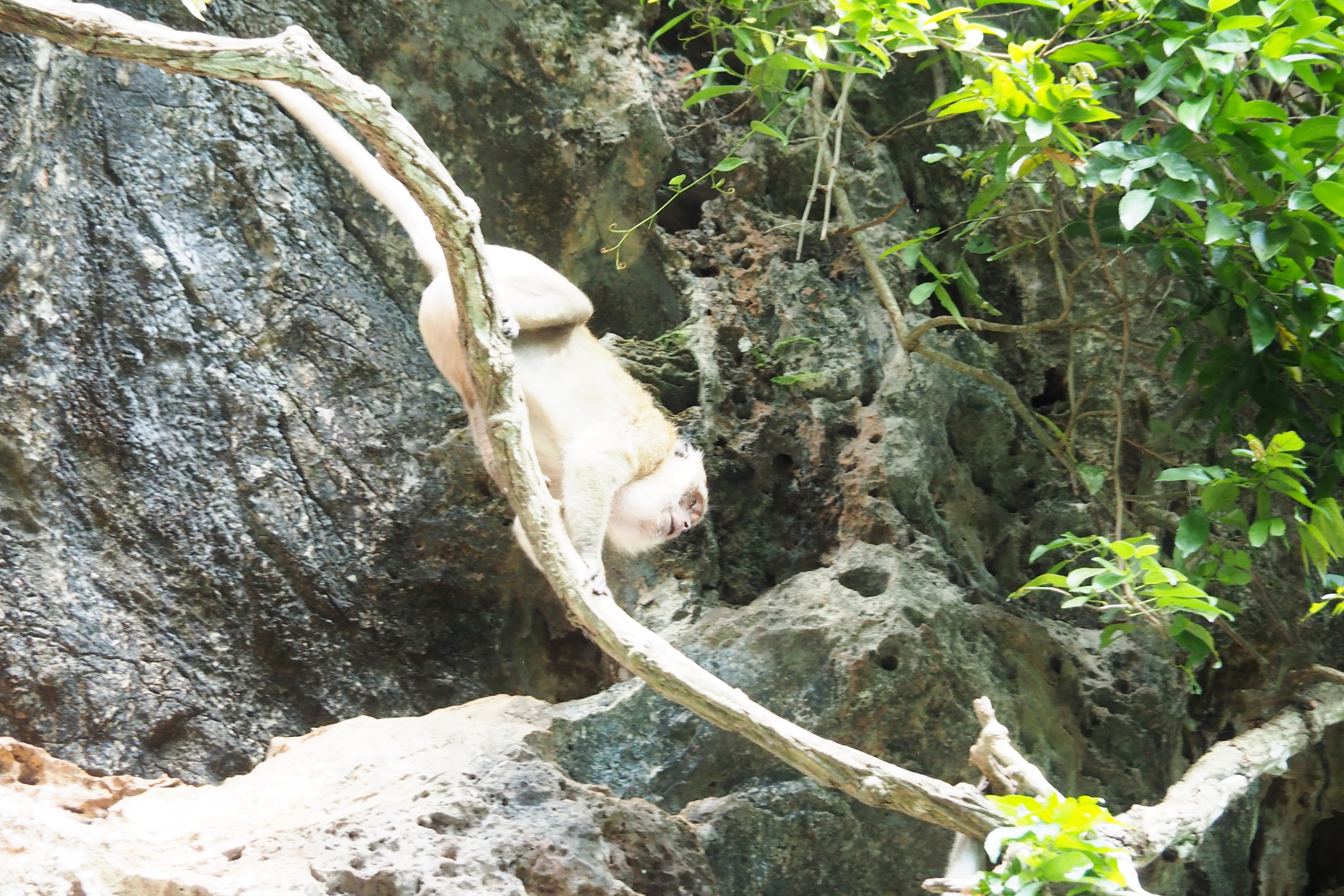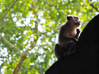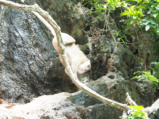 熱帯雨林にあるお寺の周辺での写真です。バナナ、ブーゲンビリアに野生のサル。どことなく“陽気”さを感じました。