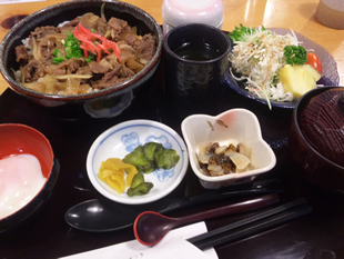 写真Aは料理屋さんで出されたまま撮った牛丼御前の写真。メインの牛丼より前菜だのお新香のほうがかえって目立っています。