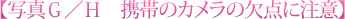 ちなみに写真G/写真Hの違いは、カメラの「ホワイトバランス」設定によるもので、通常「オート」になっているものを変更することで回避できます。