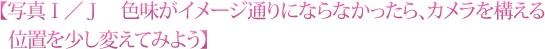 写真G/写真Hで解説したように、ちょっとした違いで仕上がりの印象が変わってきます。写真I/写真Jもその例です。