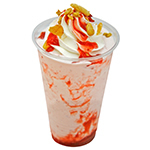 バニラソフトに牛乳とイチゴ、氷を加えてホイップ、グラノラをトッピングしました。シェイクと氷の粒感が新しい食感を生み出しています。カシスベースのクリームソーダも人気です。