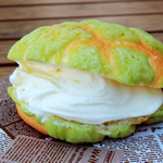 ベーカリーの人気ナンバー1がこれ! 七城メロンパンに12種類の手作りジェラートからひとつを選んで挟めばメロジェラの完成です。好みの組み合わせを研究してみましょう。