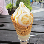 兵庫といえば黒豆というわけで、黒豆の風味があるソフトクリームです。保存料無添加の自然の味を楽しんでください。黒豆の風味が濃厚なソフトクリームに合うのが実感できます。