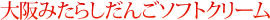 大阪泉州にある和菓子店「むか新」とコラボレーションしてできたソフトクリームがこれ。醤油ダレ味のソフトに、中からタレが出る大阪風みたらしだんごをトッピングしました。