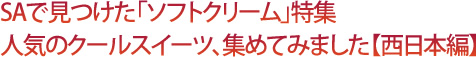 編集室も大好きなソフトクリーム特集の後半、西日本編です。進化し続けるSAでは、毎年新しい“人気者”が登場します。さて、西日本から選りすぐったクールスイーツ、今年は何種類ゲットできるのでしょうか?