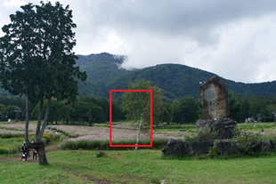 早速その展望台に行き、撮った写真が写真Bです。確かに花はいっぱい咲いて、霧がかかってはいるものの筑波山もバックにできて……。しかし、これでは満足できません。花は反対を向いているうえ、さっきの場所より花が少ない。まして、周囲の建物が目障りです。