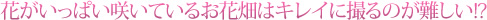 花がいっぱい咲いていると、当然キレイな写真が撮れる……と思ってしまいがちですが、そこが落とし穴。実は、花がいっぱい咲いている場所こそ、キレイな写真を撮るのは至難の業なのです。