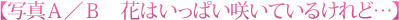まずは反対方向を向き、ズームアップして望遠気味に狙ったのが写真Cです。花どうしの密度がグッと縮まり、花がいっぱい咲いているように見えます。これがまず一つの方法です。