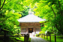 観光船が発着する松島の観光桟橋から細い道を入ったところに円通院があります。300円の拝観料を支払って門をくぐると、そこは緑色の別世界でした。