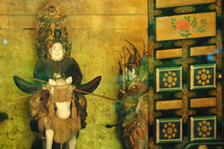 前面の扉は開放されており、ガラス越しにではありますが、宮殿型厨子(ずし)の中に馬にまたがる光宗の像がありました。